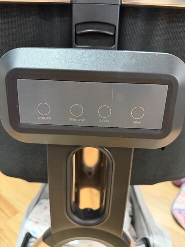Sallanma funksiyalı yelləncək - Dairəvi dayaq bazası ilə sabit konstruksiya - Elektriklə işləyən yellənmə mexanizmi: alt hissədə idarəetmə paneli və sürət/seçim düymələri - Yumşaq oturacaq/beşik h...