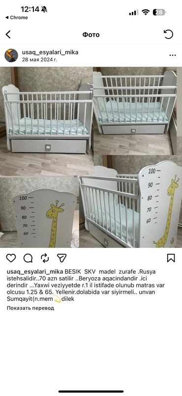 Oğlan və qız üçün, İşlənmiş, Dördbucaq, Beşik, Dəstsiz, Matras ilə, Yellənmə mexanizmsiz
