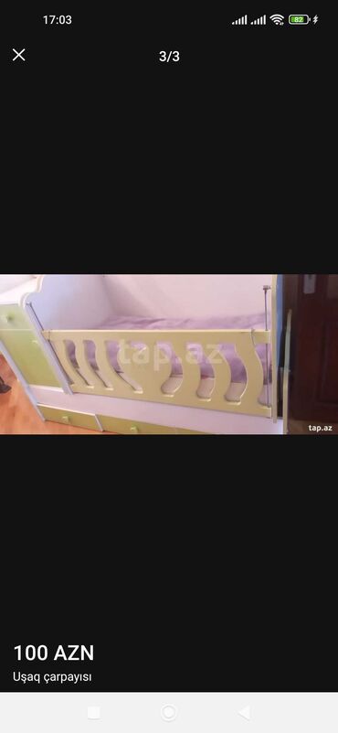 Beshik tek neferlik.Ela veziyyetdedir hecbir qirigi eziyi yoxdur.5 eded paltar levazimat yigmaq ucun qovlugu ve matrasi var.sokulur hisselerede bolmek olar.8ay istifade olunub 320 azne alinib.Real ...