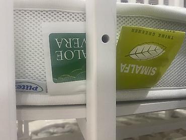 Çox az istifadə edilib. İdeal vəziyyətdədir. Rus istehsalıdır. Kravat balacalaşır əlavə olaraq. Yellənmə mexanizması var. Tül, matrası, qu quşu oyuncağı, səsli oyuncağı ilə birlikdə satılır. Matras aloye veranın original matrasıdır, ortopedikdir, yay-qış tərəfi var. Tək matrasa 150 azn ödənilib kravatı alanda. Real alıcı ilə qiymət razılığı edilə bilər.