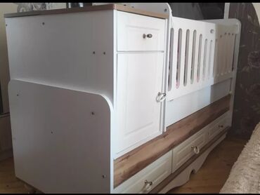 TƏCİLİ satılır. Uşaq beşiyi yaxşı vəziyyətdə. Ölçüsü böyükdü, uşaq 5 yaşa kimi yata bilər alt hissəsində 3 ədəd siyirtmə, bitişik dolabı var.