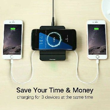 Simsiz şarj cihazı. Yeni cihazdır. İşlənilməyib. Kompaktdır. Eyni anda 3 cihazı şarj edə bilir. Qiymətdə razılaşma olacaq