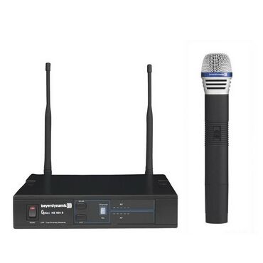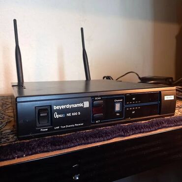 Radiomikrofon yaxşı işlək vəziyyətdədir. Opus 600 yüksək səs keyfiyyətinə malikdir. Mikrofon canlı ifa və nitq çıxışı üçün tövsiyə olunur. 16 kanallı UHF radiosistemi olan Beyerdynamic-OPUS 600 aşağıdakılardan ibarətdir: vokal dinamik hiper kardioid mikrofon - Beyerdynamic NE 600 S, dəyişdirilə bilən kapsul - DM 960 daxili kapsul ilə - TGX-60, həmçinin səsli transmitter - SDM 660.2-AA batareyası ilə işləyir. OPUS 600-NE 600S radiosistemi üçün tək kanallı UHF diversitiv qəbul edici. Radiosistem 16 kanal, 5 alt tezlik diapazonuna malikdir ki, bu da geniş radio tezlik şəbəkəsi qurmağa və eyni anda 60 radio tezlik sistemi istifadə etməyə imkan verir. Birbaşa görünmə məsafəsi ilə işləyərkən məsafə 100 m-ə qədərdir. Skanning funksiyası avtomatik olaraq müdaxilədən azad tezliklərin axtarışını başlatmaq üçün istifadə olunur. Tapılan tezliklər ACT (kanalın avtomatik yerləşdirilməsi) funksiyası olan transmitterə ötürülür. Tezlik öncədən qurma seçimləri də əl ilə seçilə bilər. LED-lər bütün iş parametrlərini və ya seçilmiş tezlikləri göstərir.