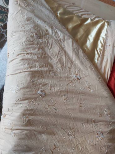 Yun yorğanlar - Material: təbii yun doldurmalı, ənənəvi əl tikməli yorğanlar. - Parça: üstü zərif naxışlı parça (sarı-qızılı tonlarda), digər tərəfi çiçək naxışlı/parça kombinasiyalı. Kənar bəzəkl...
