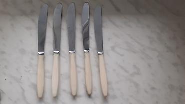 Kolleksiya üçün dekorativ süfrə bıçaqları dəsti. - Sayı: 7 ədəd yeni - Qiymət: 40 AZN (şəkildə göstərilib) - Material: paslanmayan metal bıçaq hissəsi, relyef naxışlı metal/qumqara tonda qulplar -...