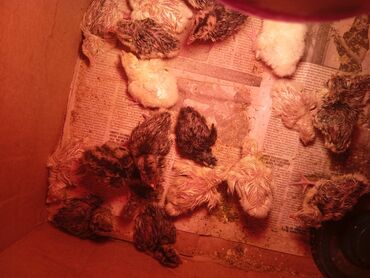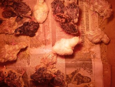 - Yeni çıxmış bildirçin cücələri, müxtəlif rənglər (ağ və qəhvəyi ləkəli).