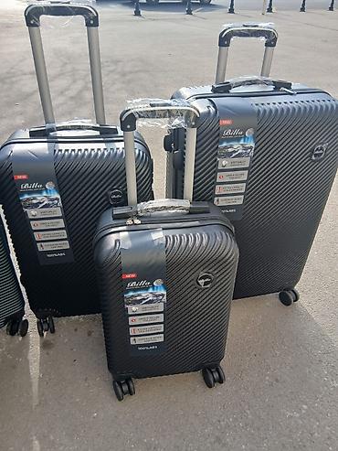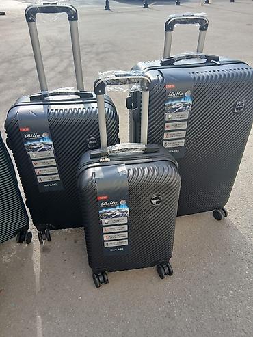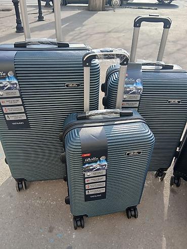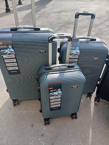 Sərnişin çamadanları dəsti – 3 ədəd - Brend: Billa (etiketdə göstərilib) - Material: sərt korpus, relyefli (cızığa və zərbəyə dayanıqlı dizayn) - Rəng: boz/metallik - Təkərlər: 360° fırlanan dörd ...