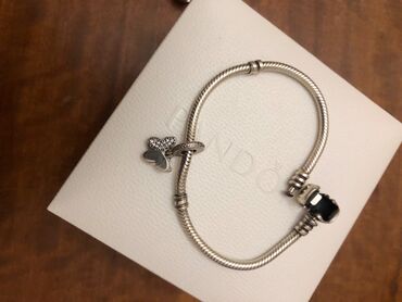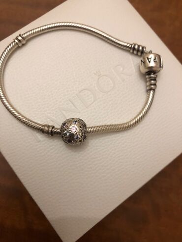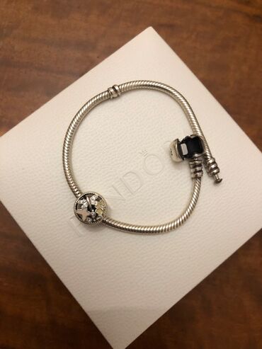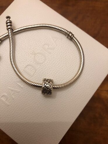 Pandora orijinal qolbaq və şarm - Brend: Pandora - Material: gümüş rəngli metal, ilan zəncirli qolbaq - Qapanma: ürək formalı klips, üzərində sonsuzluq işarəsi detallı - Aksesuar: parlaq daşlarla ...