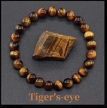 Təbii “Pələng Gözə” daşından elastik bilərzik - Material: təbii Pələng Gözə (Tiger’s Eye) yarıqiymətli daş muncuqlar - Rəng/naxış: qızılı-şabalıdı tonlarda, daşın özünəməxsus parıltılı “ipək zolaq...