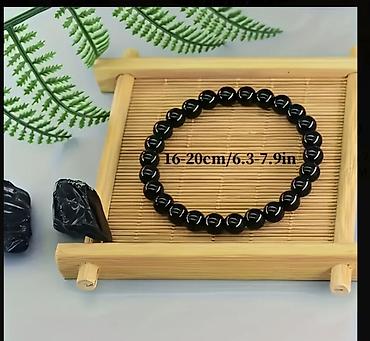 Qara muncuqlu elastik bilərzik - Material: parlaq qara muncuqlar (sintetik daş/akril tipli), elastik iplik - Dizayn: dairəvi muncuqlar, aşağı hissədə sallanan dekorativ uc; uc hissədə qızılı rəngl...