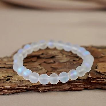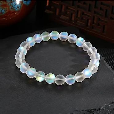Ay daşı effektli şüşə muncuqlardan elastik qolbaq