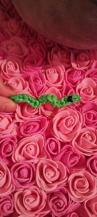 - Yaşıl çalarlı rezin bantlardan hazırlanmış kiçik ilan fiquru (göz detalları ilə)