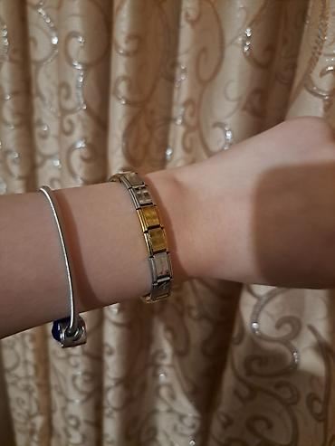 Gümüş örtüklü mis və ya latun ərintisindən bilərziklər. Hər biri yenidir. Rənglər: Gümüşü - 3 ədəd Rose gold - 1 ədəd Tünd boz - 3 ədəd Bir ədədin qiyməti 12 AZN. Qiymət sondur. Ünvan: Elmlər Aka...