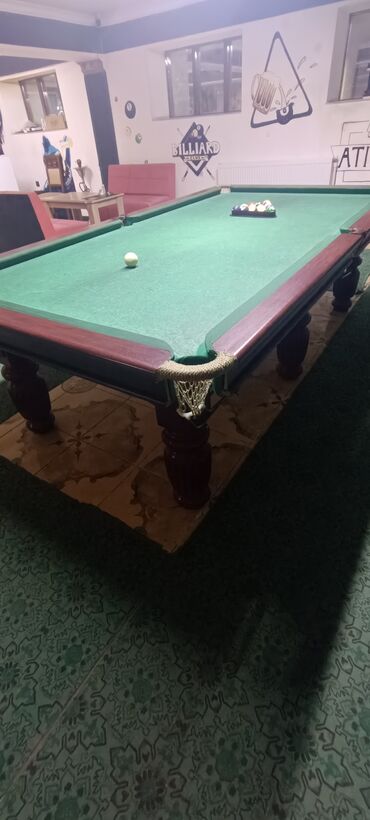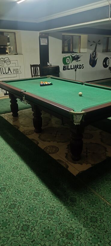 8 pool bilyard masasi, şarları,üçbucağı ve üstünde 4 eded kee taxtası verilir, mermer daşdır üzeri, demek olar ki işlenmiyib,avropa zavod malidir,elde duzelme deyil, tecili satıldığı üçün deyerinde...
