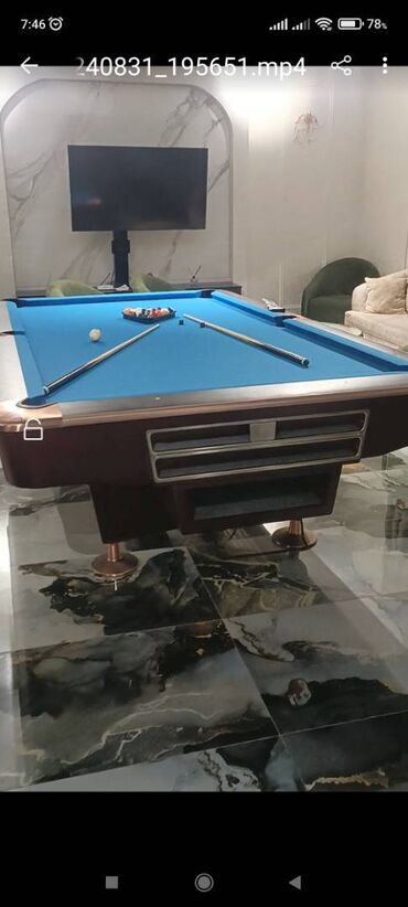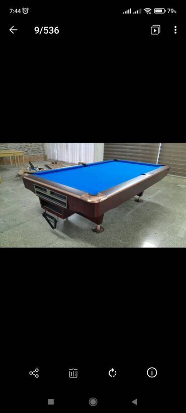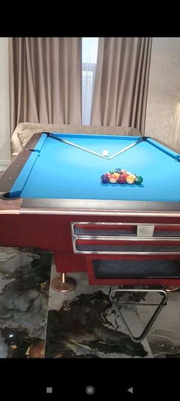 bilyard .Amerkan pul bilyard stolu satilir Tam prafisional qara mermer 9 fut. Cox kefiyetli matrialdan yigilib.butun detallarina xususi nezaret edilib. Ustunde her sey verilir. Parcasi. Şarlari tam...