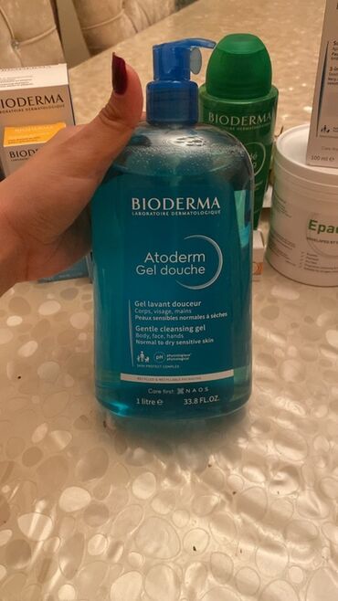 - Bioderma Atoderm Gel Douche – həssas, normaldan quruya meyilli dəri üçün yumşaq təmizləyici gel. Bədən, üz və əllər üçün. pH fizioloji, Səthin Qoruyucu Kompleksi ilə. Pompalı flakon. Həcm: 1 litr (33.8 fl.oz).