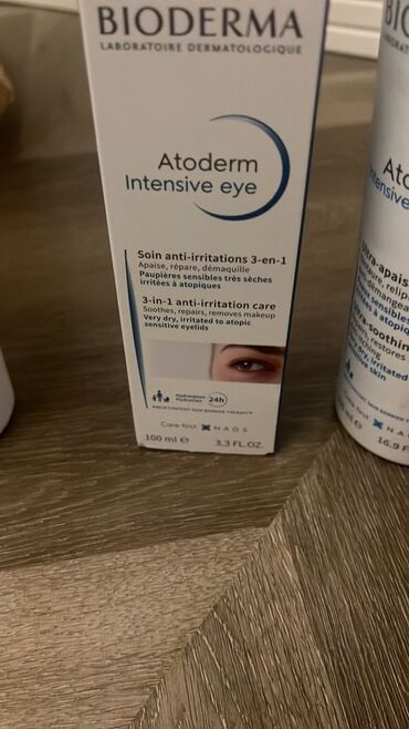 - Bioderma Atoderm Intensive Eye – 3‑ü 1‑də anti‑iritasiya qulluq: sakitləşdirir, bərpa edir və makiyajı təmizləyir. Çox quru, qıcıqlanmış və atopik həssas göz qapaqları üçün. 24 saat nəmləndirmə. Həcm: 100 ml (3.3 fl.oz).