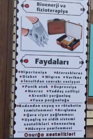 - Portativ cihaz və xüsusi keçirici əlcəklərlə aparılan bioenerji massajı