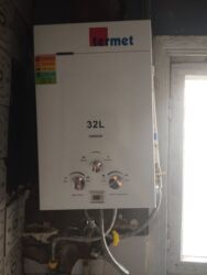 Divar tipli qaz su qızdırıcısı / kombi tipli qızdırıcı - Kompakt, minimal dizayn: ağ korpus, divara montaj üçün uyğun. - Ön paneldə rəqəmsal ekran: su temperaturu göstəricisi (şəkildə 37°C). - İki...