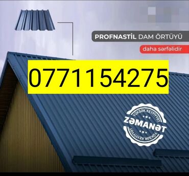 Istenilen olcude qalinliqda Dam ortukleri cerepitsa Profnastil ve aksesuarlarile birlikde kesilib hazirlanir unvana catdrilir.7ilden 10ile qeder zemanet