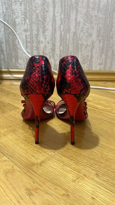 1)QARA RƏNKLÌ ZƏRÌF DAŞLARLA BƏZƏDILMIṢ AÇIQ KƏSILMLI TOPUQLU YÜKSƏK INCƏ DIK DABANLI ƏYAQABI MODELIDIR raz -37 -4 AZN, 2)QIRMIZI AYAQBI raz-38-5 AZN satilir cox geyinilməyib yaxwi vəz...
