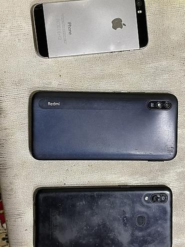 - Xiaomi Redmi (model arxada “Redmi” loqosu ilə, tək arxa kamera + flaş şaquli yerləşimdə). Gövdə tünd mavi/qaraya çalan, ekran çərçivələri nazik.