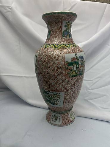 Çin üslubunda rəngarəng naxışlı keramika vaza - Material: porselen/keramika - Forma: dar boğazlı, yumru gövdəli dekorativ vaza - Dizayn: əl işi görünüşlü çoxrəngli rəsmlər – saray səhnələri, çiçək...