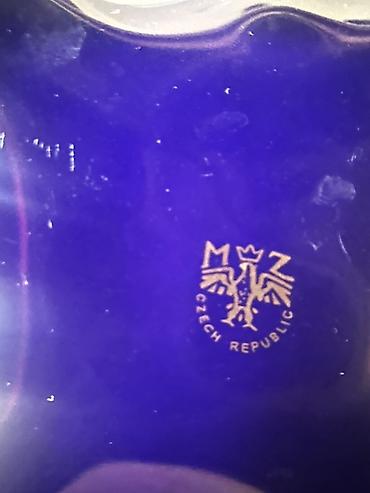 Guldan satilir 15 azn unvan çapayev vusqa2Kobalt mavi şüşədən dekorativ vaza - Material: qalın kobalt mavi şüşə - Bəzək: qızılı rəngli zolaqlar və ornamentlər, əl işi çiçək naxışları (ağ-yaşıl ləç...