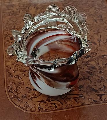 Şüşə dekorativ vazalar (2 ədəd) - Material: əl işinə bənzər üfürülmüş şüşə - Rəng və naxış: bej-krem tonlarında mərmərvari və fırça zolaqlı effekt; şəffaf üst hissə ilə dalğalı kənarlar - Dizayn: ...