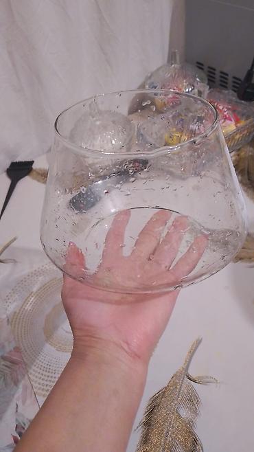 Şüşə dekorativ vaz/şamlıq plafonu - Material: şəffaf qalın şüşə - Forma: kürəvari (top formalı), bədii relyefli naxışlı səth - Rəng: rəngsiz, şəffaf - İstifadə: masaüstü dekor, kiçik güllər üçün v...
