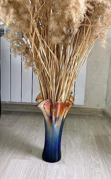 Böyük ölçülü dekorativ dəstə: pampas/qamış buketi və şüşə döşəmə vaza