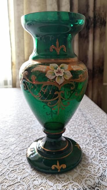 Yaşıl bagema dekorativ vaza - Material: qalın, keyfiyyətli şüşə - Rəng: dərin zümrüd-yaşıl, yarı-mat və parlak hissəli - Bəzək: qızılı naxışlı güllər və zərif qızılı haşiyələr - Forma: klassik, en...