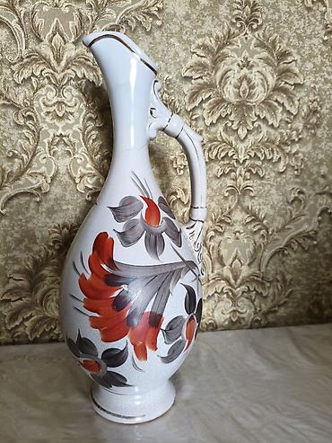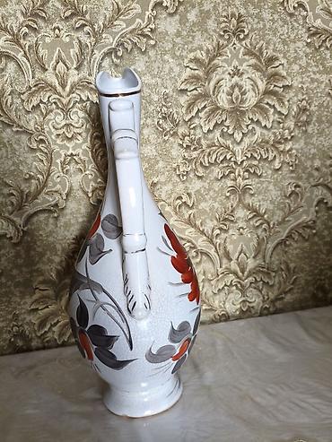 Ağ fonda qara rəngli qedimi maldlr farvor çiçək naxışları olan seramik vaza. Vazanın ağzı qızılı rəngdədir. hec bir problemi yoxdur