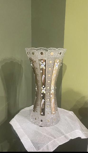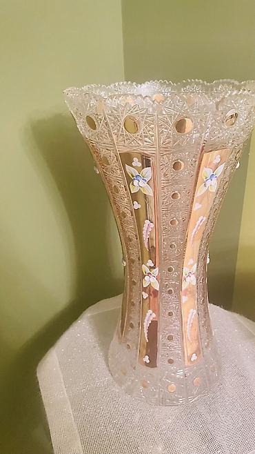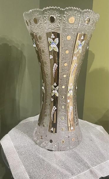 cexski gedimi vaza 25sm - Material: qalın şüşə, əl işi kəsim naxışları - Dizayn: klassik kristal üslublu ornamentlər, romb və palma yarpağı motivləri, parlaq işıq əksləri verən dərin oyma - Forma:...