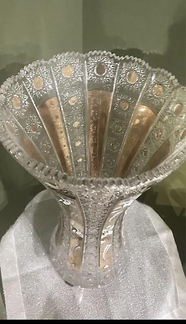 Xrustal 1980ci ilde alinib istifade olmuyub Kəsilmiş şüşədən dekorativ vaza - Material: qalın, şəffaf kəsilmiş şüşə (kristal effekti) - Dizayn: ulduz və həndəsi naxışlı oyma, şaquli panellər, dişl...