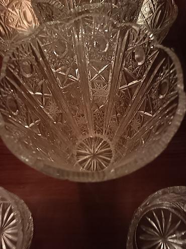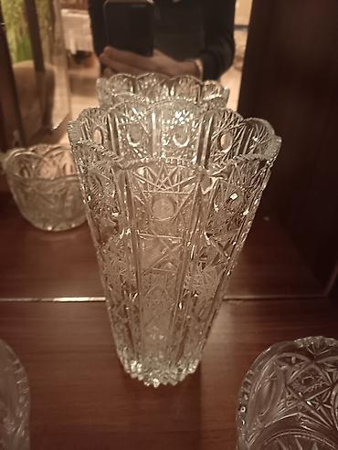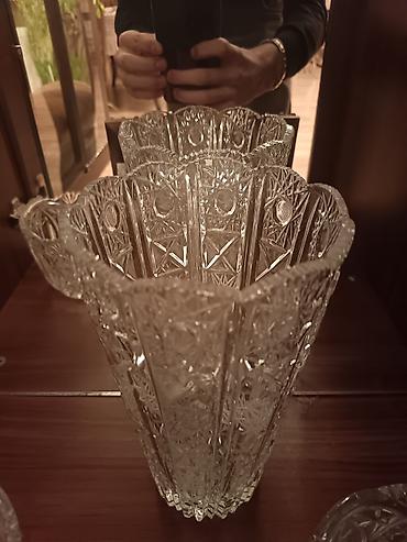 Kəsimli kristal vaza Rusiya istehsalıdır. Yenidir istifadə olunmayıb - Material: şəffaf, ağır kristal şüşə - Ölçü : hündürlük ~35sm, ağzın diametri ~ 45 sm diger bala...