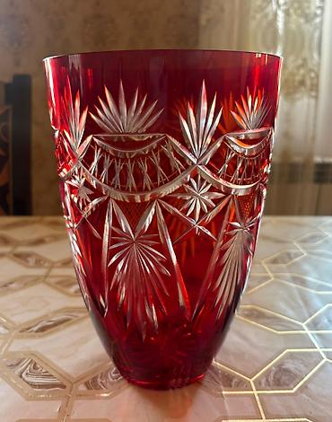 Kəsimli kristal vaza Rusiya istehsalıdır. Yenidir istifadə olunmayıb - Material: şəffaf, ağır kristal şüşə - Ölçü : hündürlük ~35sm, ağzın diametri ~ 45 sm diger bala...