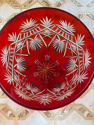 Qırmızı kəsma şüşə (kristal) vaza