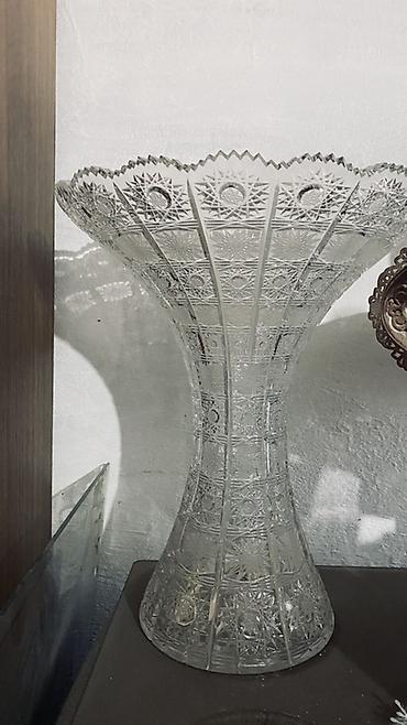 Kəsimli kristal vaza Rusiya istehsalıdır. Yenidir istifadə olunmayıb - Material: şəffaf, ağır kristal şüşə - Ölçü : hündürlük ~35sm, ağzın diametri ~ 45 sm diger bala...