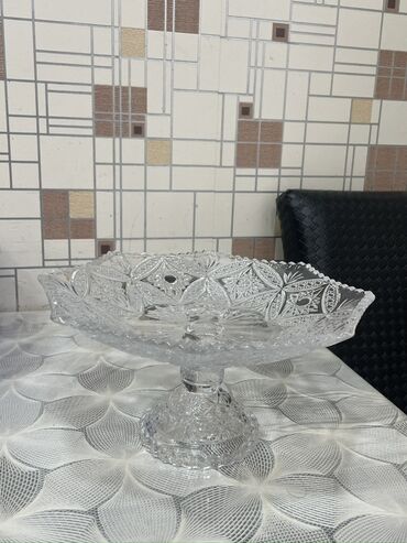 Şirniyyat/çarşaf qabları dəsti – 2 ədəd - Material: qalın kəsimli şüşə (kristal effektli) - Forma: ayaqlı, oval-kəsimli kasalar - Dizayn: kənarları dişli, iç və xarici səthdə dekorativ oyma naxışl...