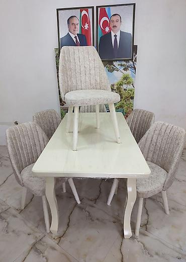 Stol stul tezedi yuksek seviyyede hazirlanib Stol mdf materialdi krasqasi masin boyasidi Stullar fistig agacindan hazirlanib 90×160 bagli veziyyetde 90×2 metre acilan veziyyetde Catdirilma qurasdir...