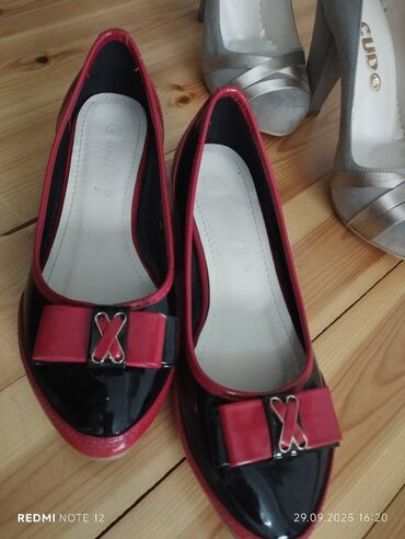 Az geyinilmiw ayaqqabilar qara 39 razmer, dabani gullu 38 razmer
