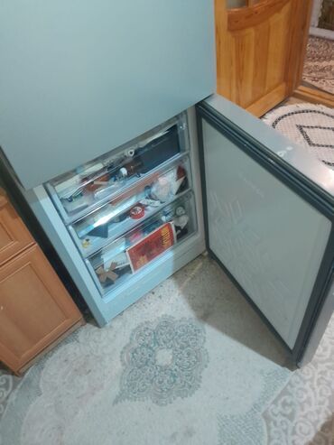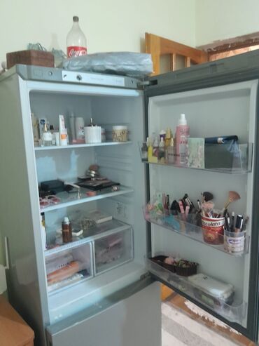 - Dizayn: alt kamera dondurucu, üst kamera soyuducu; tutacaqsız, inteqrə edilmiş şaquli tutacaqlar; boz/metallik korpus