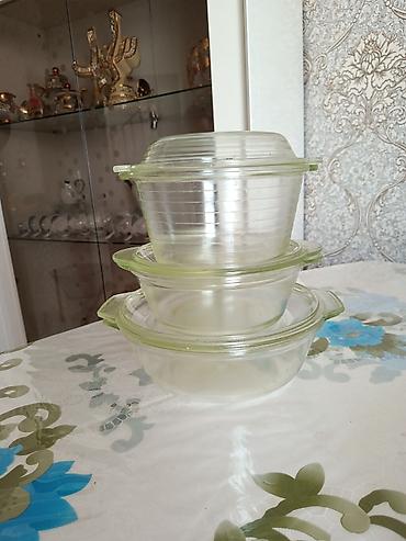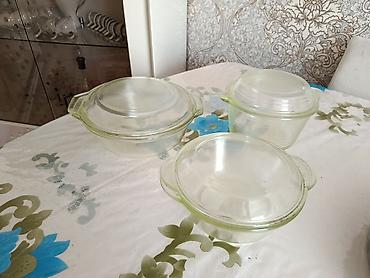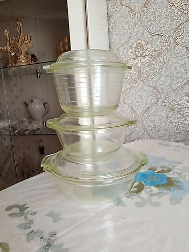 Şüşə bişirmə tavaları. 3 ədəd. 1-1.5-2 litr həcmində.Qədimidir.