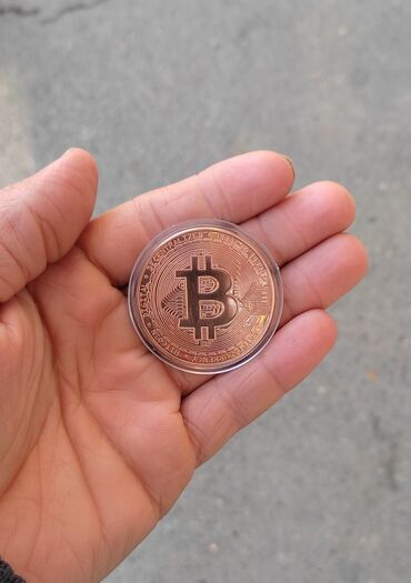 Bitcoin temalı kolleksiya sikkəsi - Material: metal (qızılı rəng). -