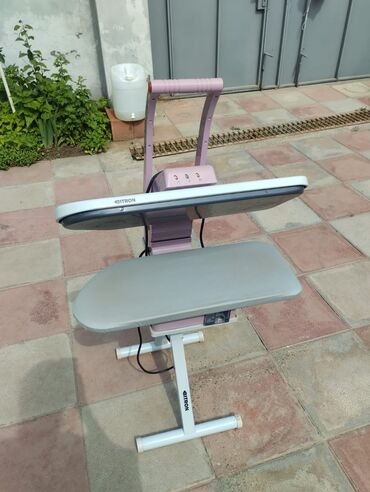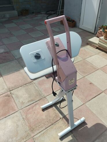 Peşəkar buxarlı ütü sistemi - Quraşdırılmış buxar generatoru olan sənaye tipli ütü - Ütü paltarı ilə birlikdə üst blokda yerləşir, aşağıda su/buxar qazanı - Ön paneldə manometr (təzyiq göstəricisi...