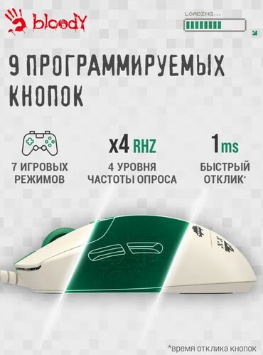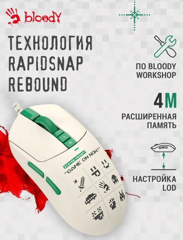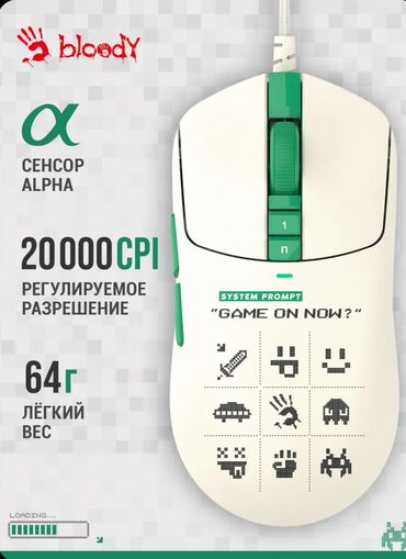 Dizayn: ağ-yaşıl rəng sxemi, üst hissədə oyun tematik ikonalar və “Game on now?” yazısı. Performans və rahatlığı birləşdirən kompakt oyun siçanı. (Yeni)