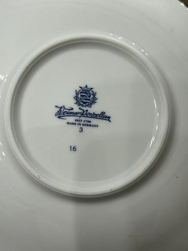 - Almaniya istehsalı Weimar Porzellan (seit 1790) markalı porselen dessert/çəhrayə boşqaları.