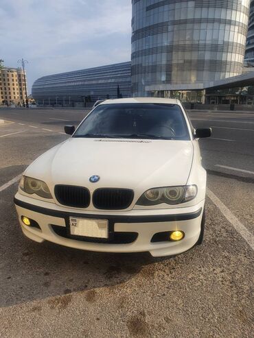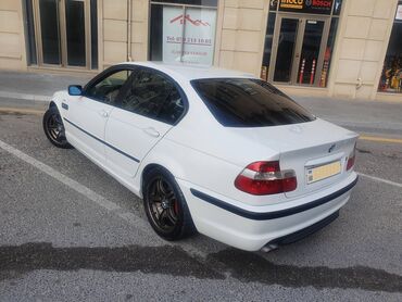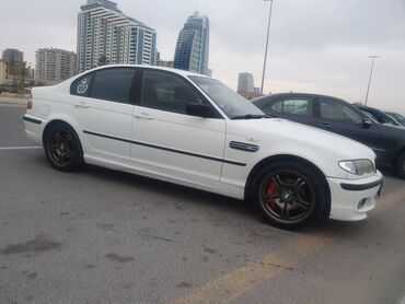BMW 3 Series E46 sedan - Korpus: 4 qapılı sedan, ağ rəng - Kuzov xətti: qara moldinqlərlə klassik E46 dizaynı, aerodinamik ön bamper - Təkərlər: BMW orijinal yüngül lehimli disklər - Optika: oval ...