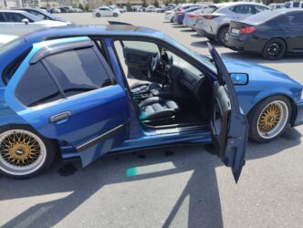 BMW 3 Series E36 sedan – fərqli tərtibatlı, mavi rəngdə. Xüsusiyyətlər və təchizat: - Kuzov: 4 qapılı sedan, aqressiv aeropaket, ön splitter və iri arxa spoyler - Rəng: metalik mavi - Disklər: qız...